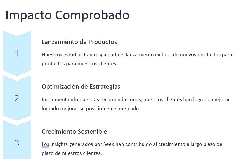 Nuestras presentaciones resaltan los hallazgos clave y ofrecen recomendaciones prácticas para la toma de decisiones..